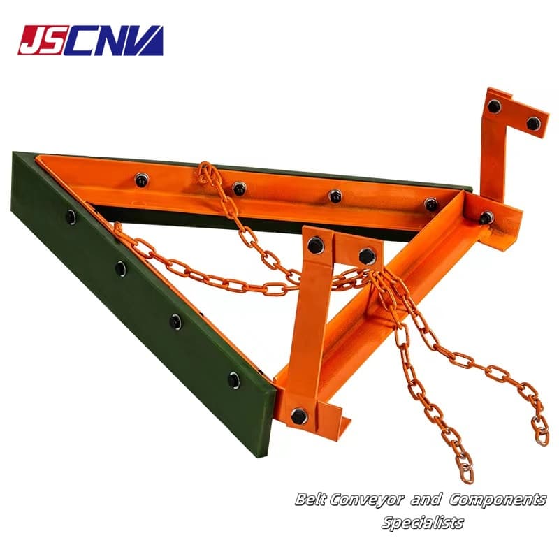 V-Plow белдік тазалағышы - қайтару белдік тазалағышының бір түрі. Ол негізінен таспалы конвейердің конвейерлік иілу шығырының алдында және ауыр тік кергіш құрылғының алдында қолданылады. Ол қышқылға және сілтіге төзімділік, отқа төзімді және антистатикалық, жоғары тозуға төзімділік сипаттамаларына ие және белдікті бұзбайды. Пышақ беріктігі жоғары полиуретаннан жасалған, V-тәрізді дизайн белдіктің тазалығын қамтамасыз етеді, ал автоматты ауырлық құрылымы пышақ тозған кезде автоматты түрде өтеуді қамтамасыз етеді.